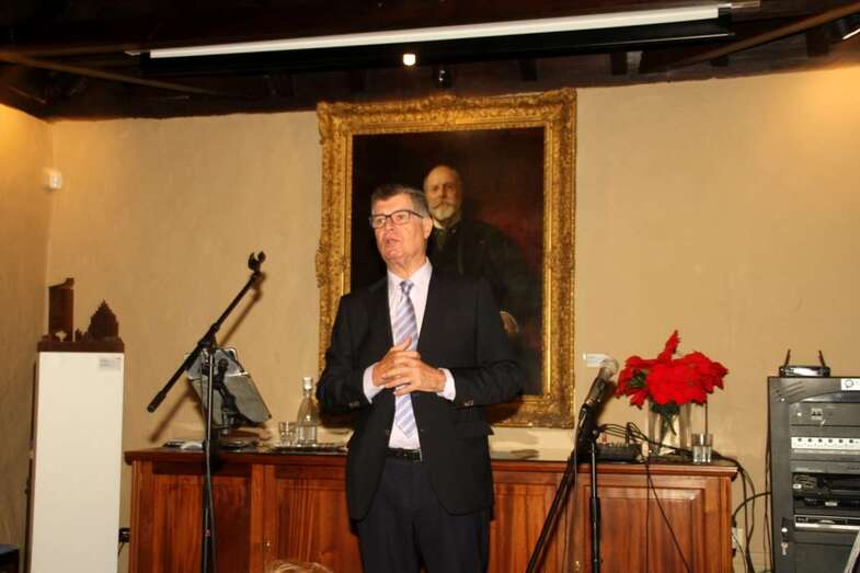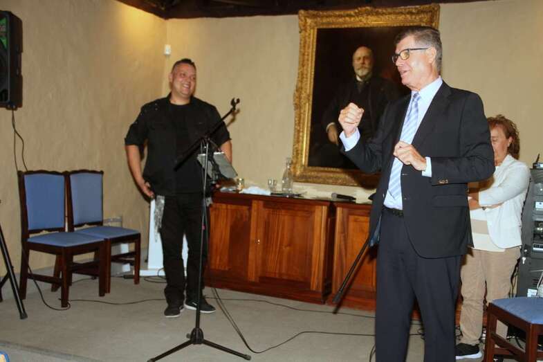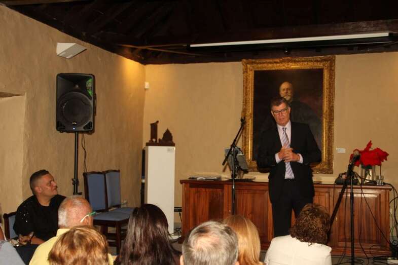 Antonio González despide el acto con las palabras que Galdós pronuncia en el transcurso de una comida que le ofrecieron unos canarios cuando no le fue otorgado el Premio Nobel de Literatura, concedido a Echegaray. El escritor, canario universal leyendo su discurso de La fe hispana, dijo en aquel momento: “Nosotros, los más lejanos, los más pequeños, tal vez los de menos abolengo histórico, seremos los primeros siempre en acudir en la defensa de la patria”.