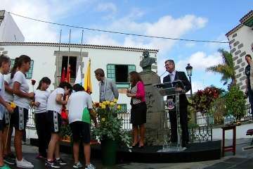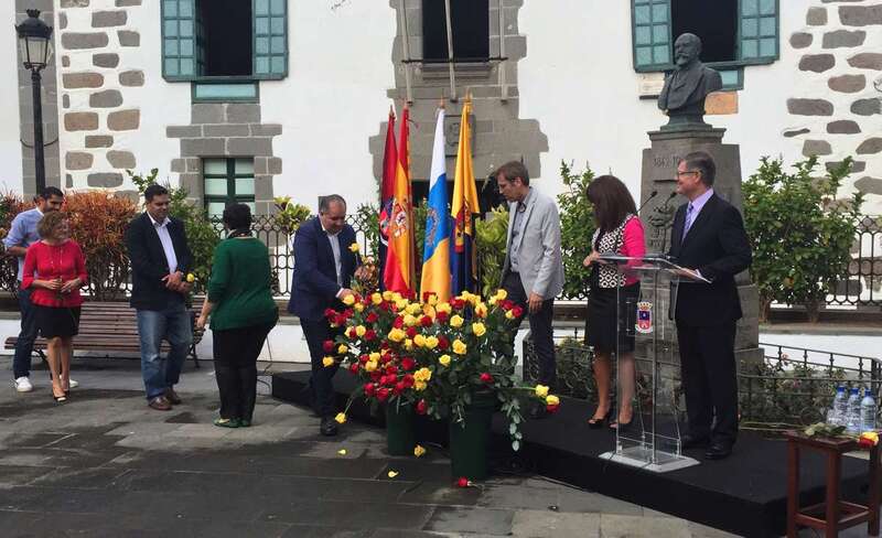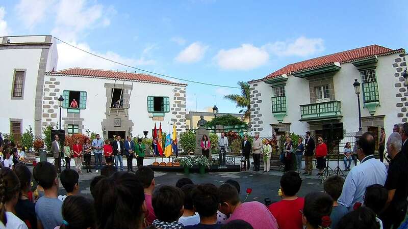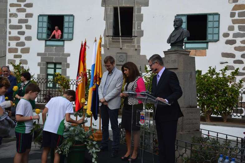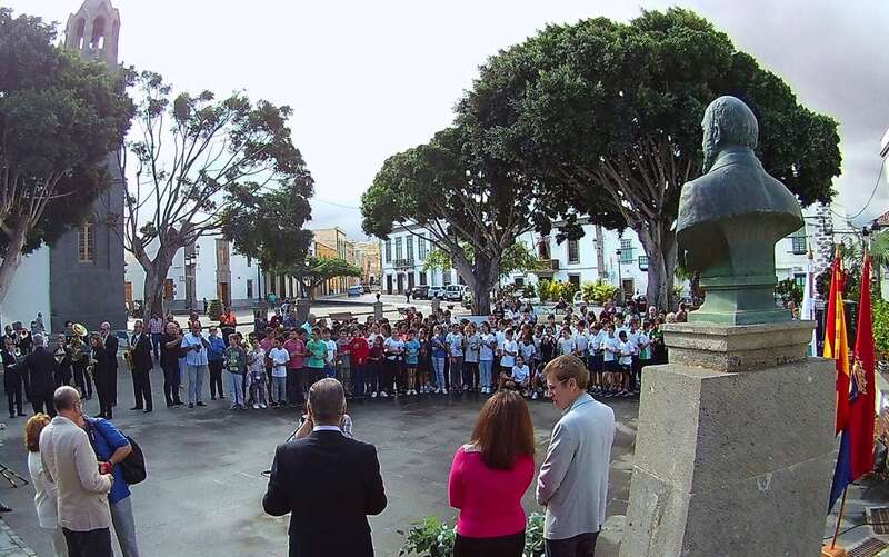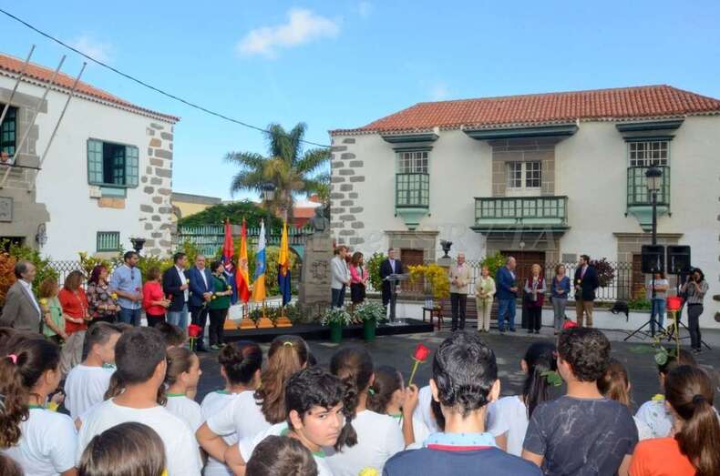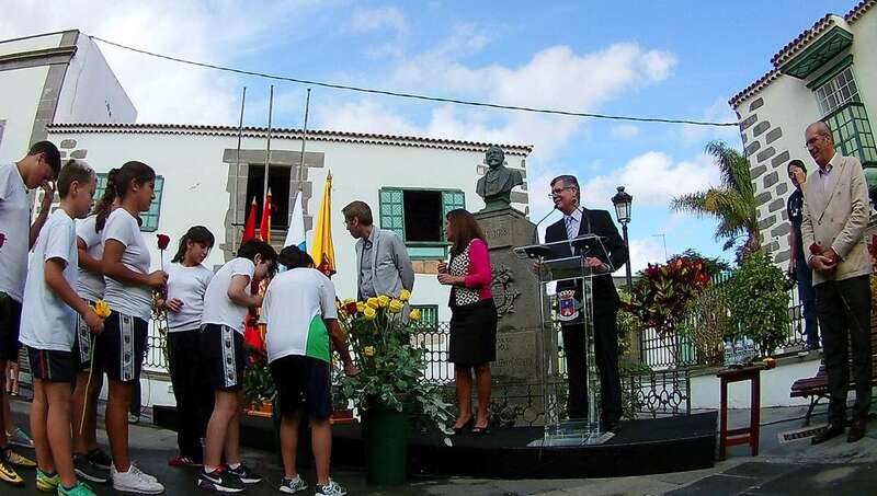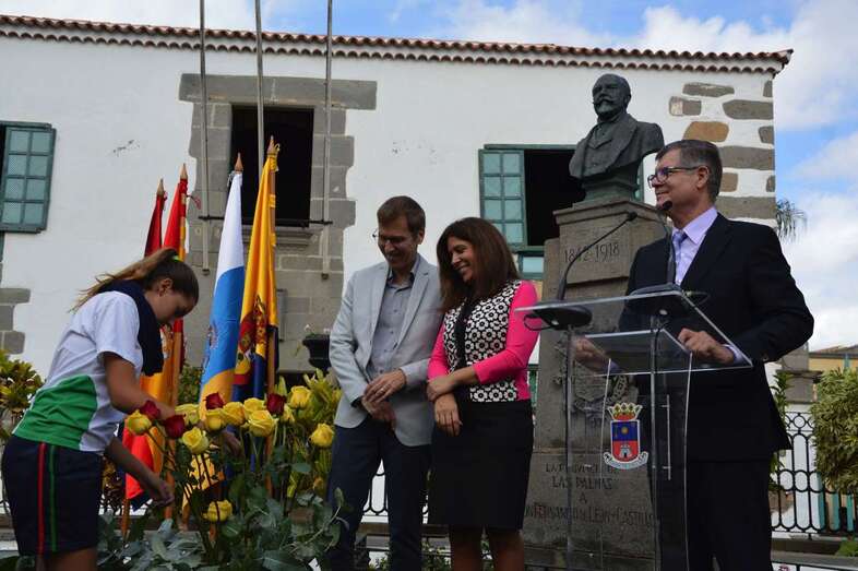 Un acto que comenzó al ritmo del pasodoble del compositor Ramón Falez que interpretó la Banda Municipal de Música y que giró en torno a la ya tradicional ofrenda floral (que se viene desarrollando desde 1968), con la presencia de un nutrido grupo de escolares de los colegios León y Castillo y San Juan de Telde, de los cronistas oficiales de Telde, Antonio María González Padrón; de la ciudad de Las Palmas de Gran Canaria y de la Isla, Juan José Laforet; y de Valsequillo, María Teresa Cabrera, así como del director general de Cultura, Patrimonio Histórico y Museos del Cabildo de Gran Canaria, Oswaldo Guerra; de la escritora y biógrafa Pepa Aurora, y de descendientes de los León y Castillo, de una comitiva municipal encabezada por al alcaldesa Carmen Hernández y de vecinos del municipio que quisieron sumarse al homenaje.