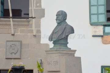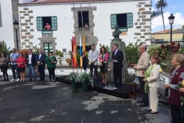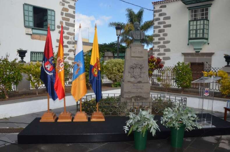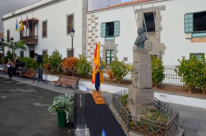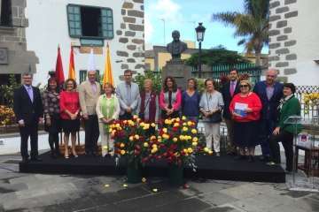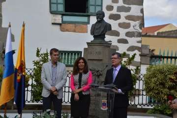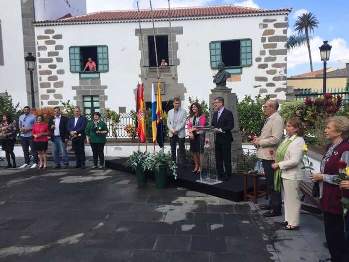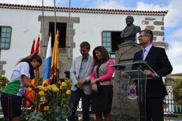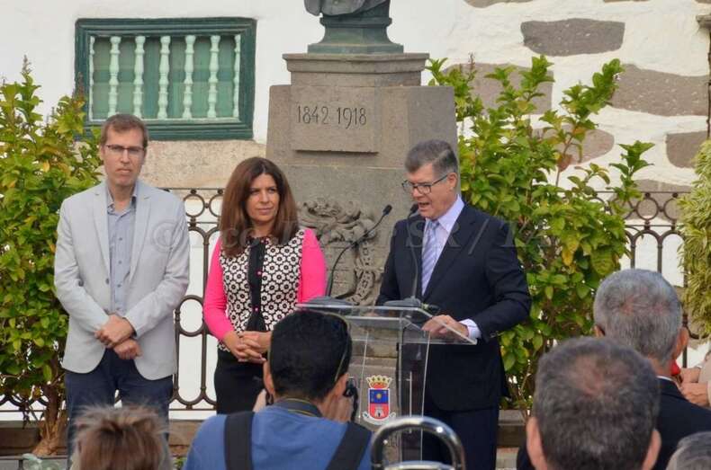 En la antaño conocida como Alameda de San Juan y junto al busto que perpetúa su legado en una de las esquinas de esta plaza, este mediodía se rindió un bonito homenaje al prócer teldense Fernando León y Castillo por el 175 aniversario de su nacimiento, acontecimiento acaecido tal día como hoy y en esta misma ciudad en el año 1842.