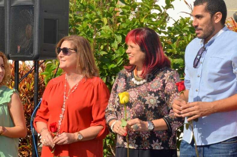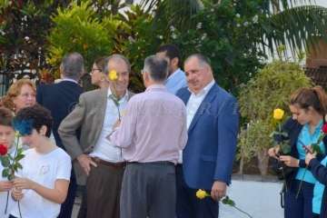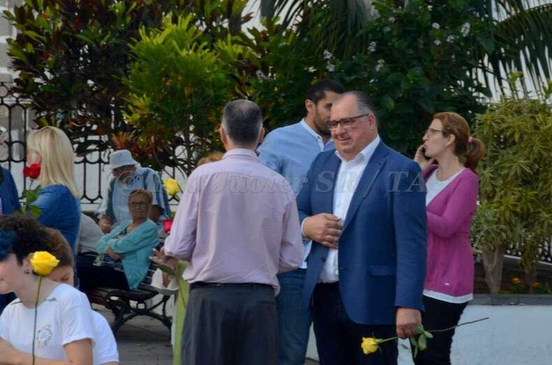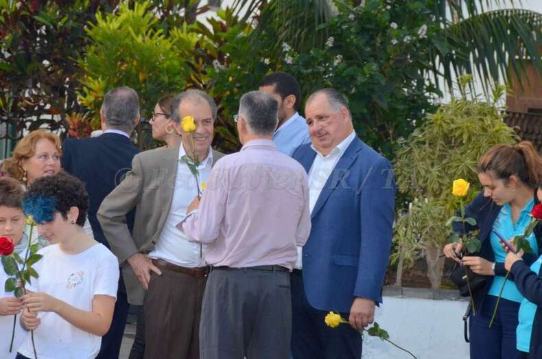 Tras escuchar el Himno Patriótico que Santiago Tejera Ossavarry dedicó a León y Castillo, composición que bajo la batuta de José Martel tocó la Banda Municipal, los asistentes fueron pasando uno a uno para depositar cerca de doscientas rosas rojas y amarillas al pie del busto que recuerda a León y Castillo en San Juan, una obra de la escultora Eloise Bosch fechada en 1900 y adquirida en los años sesenta por el Cabildo grancanario.