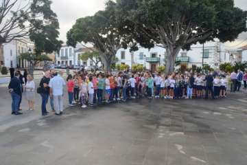 Como colofón, los escolares entonaron un entrañable cumpleaños feliz y la Banda Municipal volvió a poner el toque musical cerrando con el himno de Gran Canaria, Sombra del Nublo.