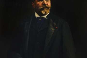 Una de las piezas de esta exposición, que se inaugura este lunes 11 de diciembre, a las 20.00 horas, es un óleo sobre lienzo que retrata precisamente al político e ilustre teldense Fernando León y Castillo, I Marqués de Muni, cuando contaba unos 65 años de edad y era senador del Reino, además de embajador de España en París. La segunda es un autorretrato en el que el artista usa el carboncillo y el lápiz para dibujarse junto a su esposa.