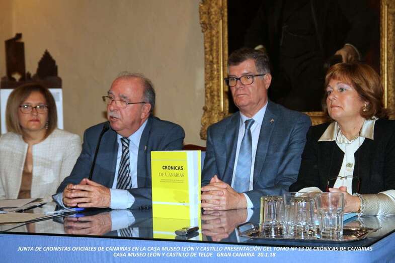 El acto finaliza con la presentación de las Crónicas de Canarias 2017, en su anuario nº 13, que cada año se presenta desde el 2005. Con la presencia en la mesa de Marta Hernández, Concejala de Gobierno de Cohesión Social, Cultura y Educación de la Corporación teldense, José Antonio Luján, expone: