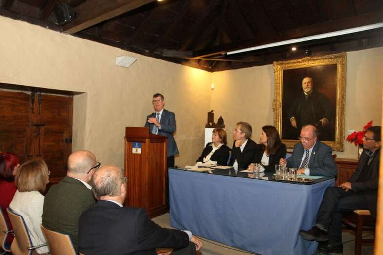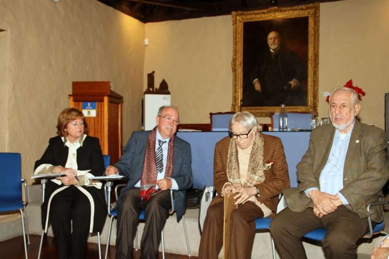 Interviene José A. Luján Henríquez, presidente de la Junta de Cronistas Oficiales de Canarias, que antes de entrar en el punto principal del homenaje dedica un sentido recuerdo a dos personas significadas de la cultura canaria, recientemente fallecidos, el pintor José Luis Vega, miembro activo de la Escuela Luján Pérez, y el folclorista Pedro González Lino, cofundador del grupo Los Gofiones. Expresa igualmente el agradecimiento a la dirección de la Casa Museo León y Castillo: