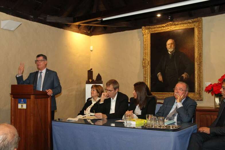 "Para mí es un grandísimo honor y hablo también en nombre del Consejero de Cultura Carlos Ruiz, que no ha podido estar hoy aquí por un problema familiar. Asistir aquí a este solemne acto organizado por la Junta de Cronistas Oficiales de Canarias, en homenaje a uno de sus miembros que ya goza de esa ansiada jubilación de su puesto como director de esta Casa. Cuando Antonio me comunicó ya hace algunos meses que se jubilaría el 5 de enero pasado, pensé sinceramente que era una broma, acorde con una persona de talante jovial, alegre, aunque profundamente serio y ejemplar en su trabajo que ustedes lo conocen mucho mejor que yo.