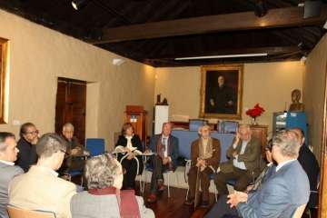 Hoy, durante la mañana del sábado 20 de enero, el Cronista Antonio María González Padrón, se ha visto arropado por sus seres más queridos, familiares, amigos, compañeros, y, como no podía ser de otra forma, por la representación de la Junta de Cronistas Oficiales de Canarias, que previo al homenaje dedicado a su persona, Antonio González, tomó parte en la reunión de trabajo y asamblea extraordinaria para abordar la aprobación del anagrama de la Junta de Cronistas Oficiales de Canarias, diseñado por el artista canario Pepe Dámaso, autoridad artística que se tuvo el honor de contar con su presencia en el salón de actos de la institución museística.