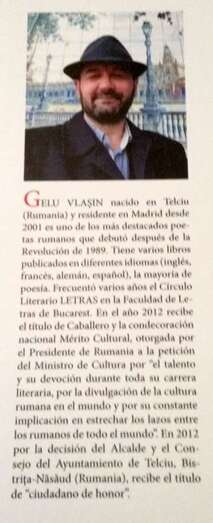 Gelu Vlasin es un poeta original y singular en el panorama de la literatura rumana contemporánea de grandes recursos poéticos y estilísticos, que se ha ganado por méritos propios un lugar destacado en la primera línea de los grandes. El poemario de Vlasin es un buen libro, basta que el lector se deje llevar de la mano del autor por las páginas del libro. Muchas gracias”.