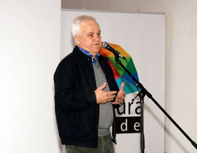 Interviene el Presidente de la Asociación Canaria de Solidaridad con el Pueblo Saharaui, Octavio Melián Hernández: “Buenas noches, señoras y señores, Autoridades, unas breves palabras en nombre de la Asociación agradecerles la presencia en este emotivo e interesante acto. Como ustedes saben que la Asociación entre otros fines está la de promover y desarrollar proyectos propios, ajenos e institucionales, así como propiciar todos aquellos actos, viajes, etc en apoyo al pueblo saharaui. Los proyectos que desde hace años se vienen celebrando como Vacaciones en Paz, que ya se ha hablado y otros de las que hay folletos en esta exposición donde se puede ampliar toda esta información. En apoyo a esta causa nos reunimos en este histórico lugar en torno a cualificado grupo de artistas que han cedido sus obras altruistamente, gracias a Juani Cabrera y a todos los participantes.