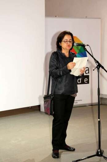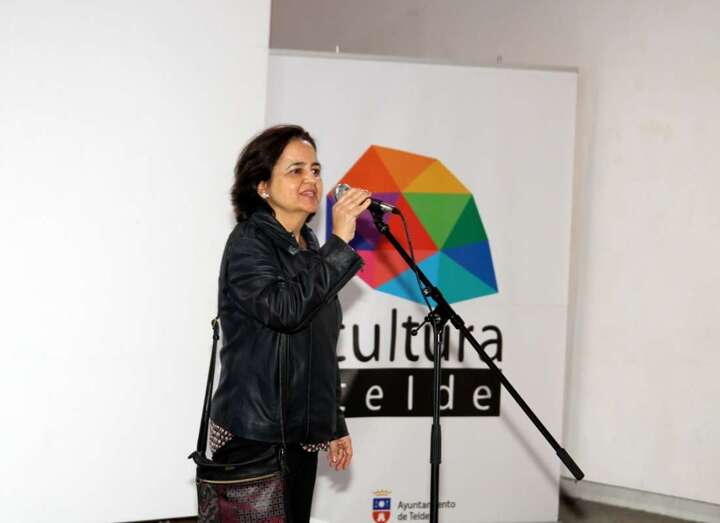 Interviene la Concejala de Cultura del M. I. Ayuntamiento de Telde, Marta Hernández: “Muchas gracias por acompañarnos en esta exposición y desde la Concejalía de Cultura asistir a esta muestra que tiene un fin solidario como recaudar fondos para el programa Vacaciones en Paz, sólo me queda agradecer a todos y cada uno de los artistas que han donado sus obras para que los niños puedan un verano más venir a Canarias, salir de su zona tan dura como es el Sahara y para nosotros es un compromiso desde Telde y de siempre, por lo que continuaremos hasta que el Sahara de una vez por todas sea libre. Muchas gracias.”