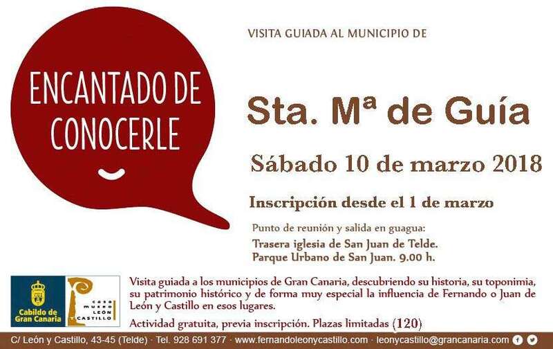 Telde.- El programa Encantados de conocerte, una iniciativa de la Casa-Museo León y Castillo de Telde que consiste en excursiones sabatinas a diferentes municipios de la Isla, visitará el próximo 10 de marzo la localidad norteña de Santa María de Guía.