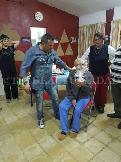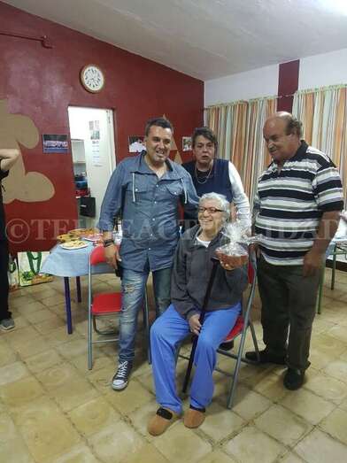 Su grupo le hizo entrega de una cerámica canaria y coloco tres imágenes suyas en las paredes del local de ensayo. Todo ello en una noche muy especial en la que Nino Jiménez estuvo acompañado por varios familiares. El concejal del Distrito Costa, Diego Ojeda (NC), tampoco quiso perdérselo.