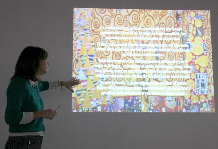 En este caso la muestra dedicada al pintor Gustav Klimt, que con el título de Gustavo Kiss 100 años visionando a la mujer”, con la intervención de la Licenciada en Psicología por la Universidad Complutense de Madrid, doña Pino Lorenzo López, y su ponencia “La mujer en la sociedad vienesa: Freud y Klimt”.