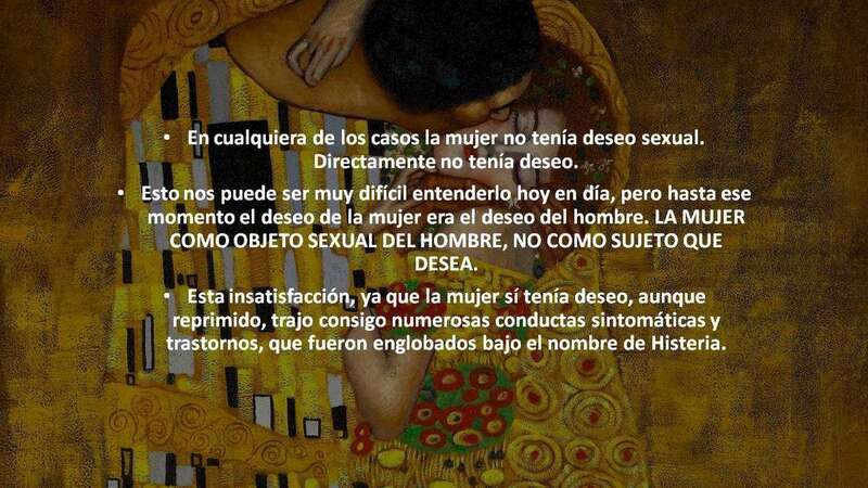 Esto nos puede resultar difícil de entender hoy en día, pero hasta ese momento, el deseo de la mujer era el deseo del hombre. La mujer como objeto sexual del hombre, no como sujeto que desea. Esta insatisfacción, ya que la mujer si tenía deseo, aunque reprimido, trajo consigo una cantidad de conductas sintomáticas y trastornos, que fueron englobadas bajo el nombre de Histeria. Una de las figuras que estudiaron estas conductas fue el médico neurólogo austríaco Sigmund Freud (Pribor, Moravia, 1856-Londres, 1939).