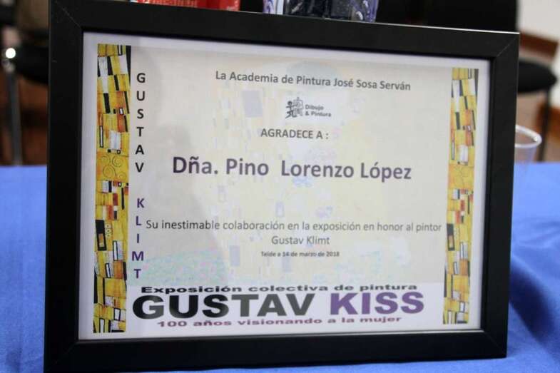 Acertada conferencia y mi agradecimiento a doña Pino Lorenzo por las facilidades e información cedidas para la elaboración de este reportaje, y la enhorabuena a José Sosa Serván y Concejalía de Cultura del Ayuntamiento de Telde, por la magnífica labor puesta en hacer posible la Exposición colectiva de pintura patrocinada por la Academia de Dibujo y Pintura José Sosa Serván, alumnado y colaboradoras, dedicada al artista austríaco, Gustav Klimt: Gustav Kiss, 100 Años Visionando a la Mujer, que se exhibe en la Casa de la Cultura, Teatro Juan Ramón Jiménez de Telde. Muchas gracias.