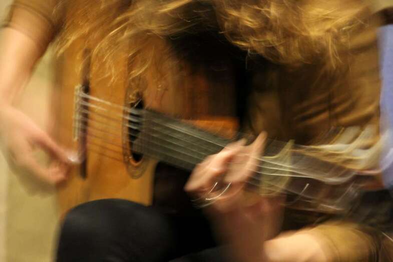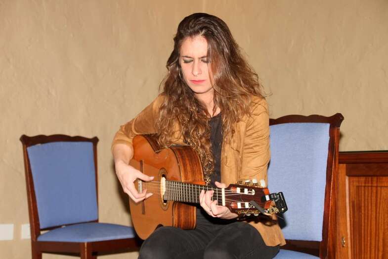 María Peláe, malagueña por más señas, la noche del viernes 23 de marzo ante una extraordinaria acogida de público que llenó el salón de actos de la Casa Museo León y Castillo, ofreció su concierto con el atractivo título musical de La folcrónica, demostró e hizo gala de una auténtica muestra de genio, talento, figura y tablas, a las cuerdas de su voz y guitarra en una fusión de latido flamenco y canción de autor, que en la interpretación de su exquisita selección de temas en el repertorio presentado sorprendió a propios y extraños por su excelente categoría interpretativa.