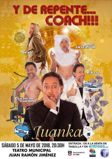 Telde.- El humorista y actor Juan Carlos Hernández, más conocido por Juanka, lleva este sábado al Teatro Municipal de Telde su espectáculo Y de repente… coach!!! Una obra que arrancará a las 20.30 horas y en la que encarna al gurú Juanka Masterson, quien se ofrece a solucionar la vida del público.