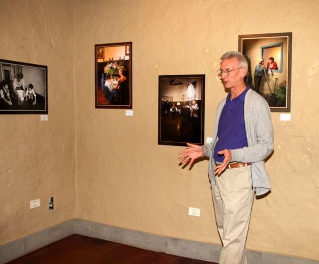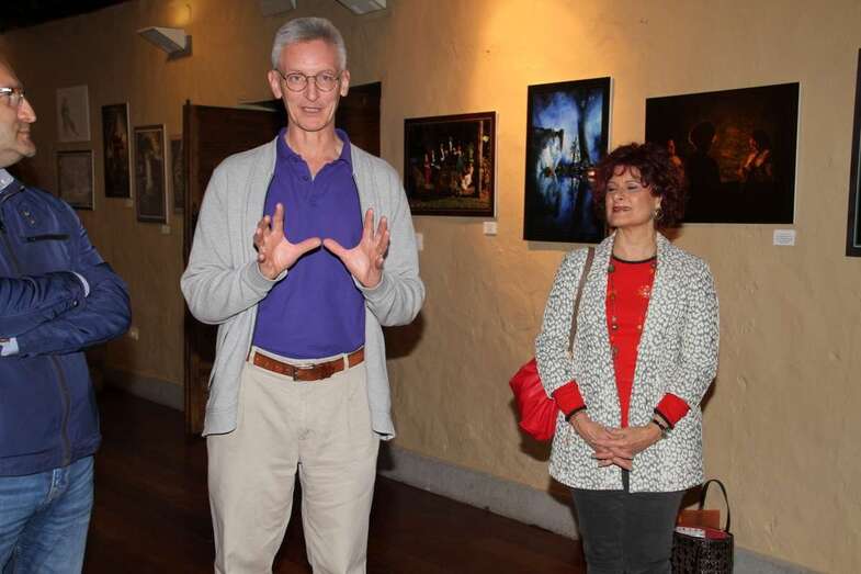 Iniciadas las intervenciones se visita la exposición con la excelente guía de su creador, Bernard, que expresa el resultado de un complejo trabajo de colaboración entre su elección del Museo Municipal de Arucas, después de haber sido premiado en un concurso fotográfico dedicado a Rincones de Arucas, y optar en una muestra fotográfica posterior algo más creativa, con el mensaje cultural y artístico dedicado a la ciudad desde su Museo. Entre otras colaboraciones destaca el apoyo profesional y personal de Amparo, Alicia y Cecilia, para este proyecto que hoy se ha inaugurado en la Casa Museo León y Castillo de Telde. Detalles que el autor de la obra acerca del cómo conseguir los efectos tanto del encuadre, efectos lumínicos, escena, ambientes, caracterizaciones, modelos, grupos, objetos, en conjunto la creación de un cuadro, que el artista nos regala, la visión de otra época en torno al Museo.