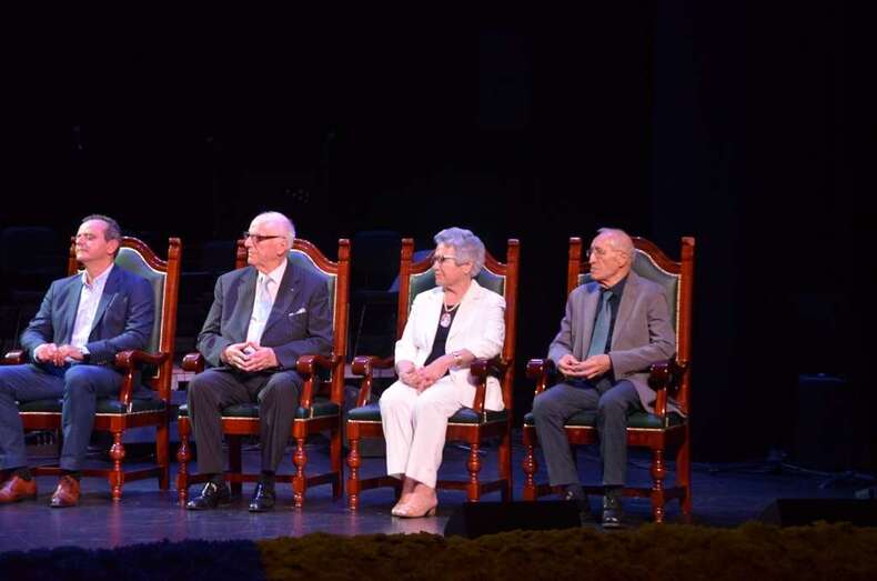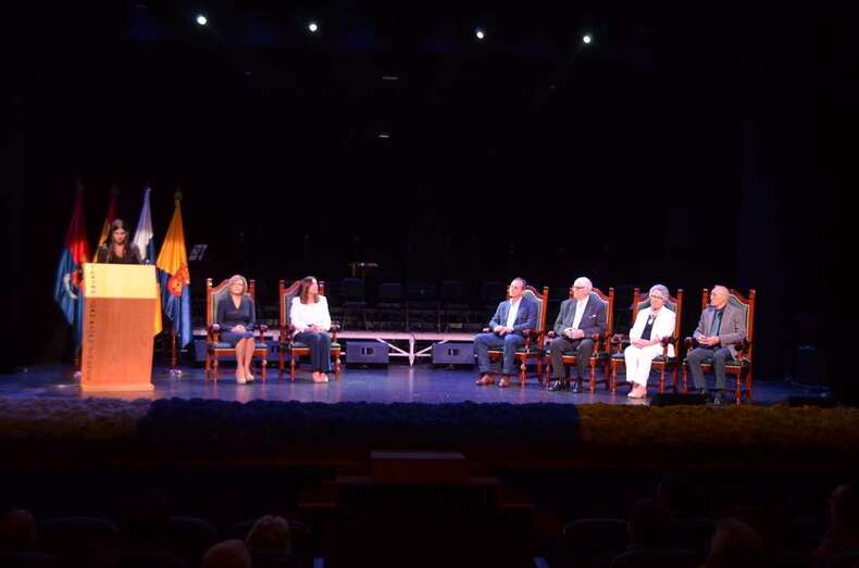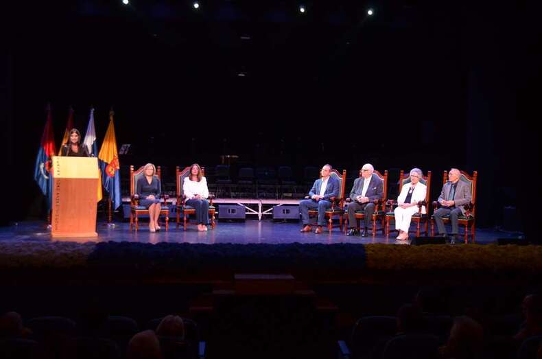 Telde.- Telde distinguió este martes, en vísperas del Día de Canarias, a los folcloristas Perico Lino, Elfidio Alonso y Faustino Curbelo y a la activista vecinal, Ángela Santana (Pimpinela), en una ceremonia institucional por el 30 de mayo que tuvo lugar esta noche en el Teatro Municipal Juan Ramón presidida por la alcaldesa Carmen Hernández y a la que asistió el vicepresidente del Gobierno de Canarias, Pablo Rodríguez, entre otras autoridades.