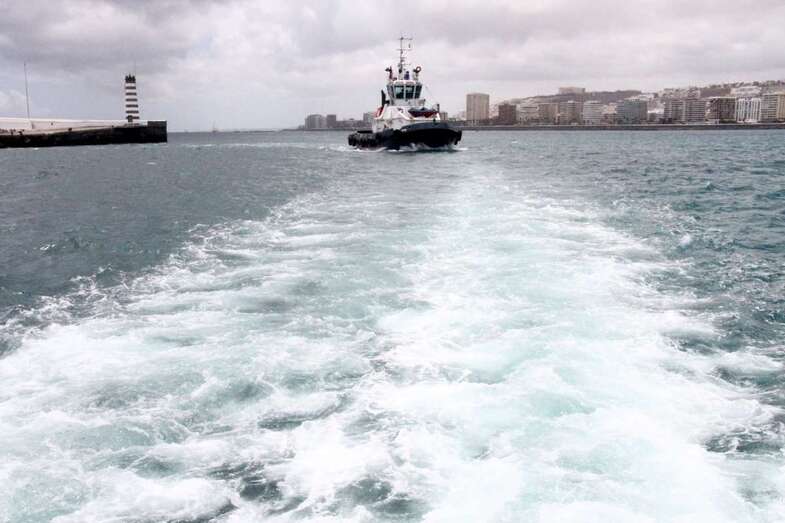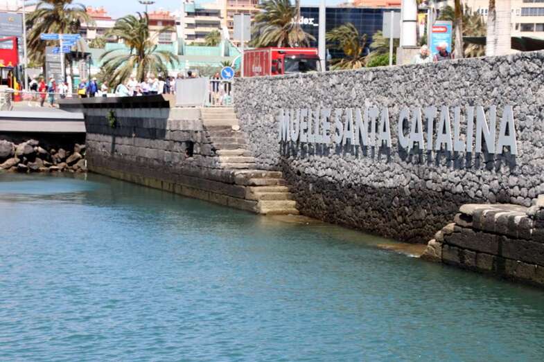 Dejando el Muelle Elder y el Muelle de Cambulloneros, rodeamos el gran espacio de terminales de contenedores, así como las grandes grúas que levantan sus estilizados perfiles sobre el Muelle de León y Castillo en sus laterales de Naciente y Poniente, para retornar por la Dársena Interior y bordear al poniente del Muelle León y Castillo. Enfrentamos el Muelle Primo de Rivera, el Muelle Grande, el Muelle Pesquero, El refugio y Sanapú, el Muelle Wilson, Muelle Santa Catalina Norte, tomando dirección para el regreso el naciente y el poniente de este mismo Muelle de Santa Catalina, cubriendo 1h 40’ de tiempo, en una interesante, curiosa y bella singladura por los rincones y espacios abiertos de nuestro gran Puerto, a la sombra y abrigo de la eterna presencia volcánica de la montaña de La Isleta con El Vigía.