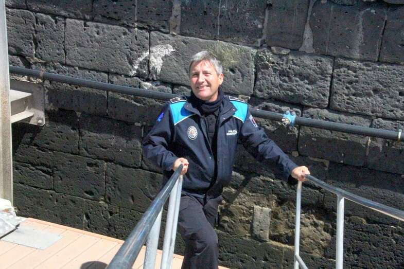 Visita magníficamente guiada en su información y excelente disposición personal por el agente de policía portuaria, D. Cecilio Hernández, que durante todo el periplo informó detalladamente, describiendo lo que ante nuestras miradas curiosas y ávidas de conocer el escenario de nuestra inmensa estación marítima atlántica del Puerto y su entorno, nombres de los diques, muelles, instalaciones, movimientos portuarios, operaciones de carga y descarga, compañías operativas de buques, plataformas de prospecciones petrolíferas, astilleros, talleres, diques secos, dársenas, sección militar naval y buques BAM, remolcadores, vigilancia, línea urbana de la ciudad, el gran entorno portuario de La Isleta.