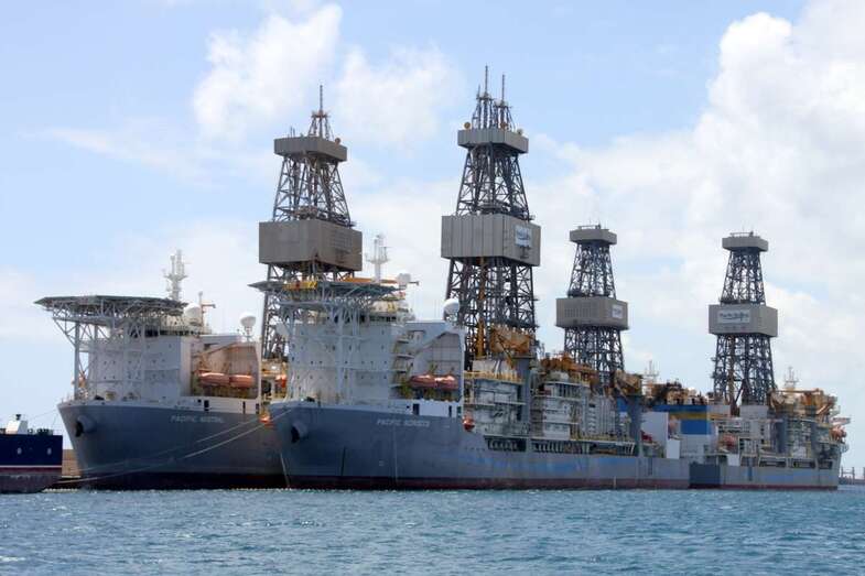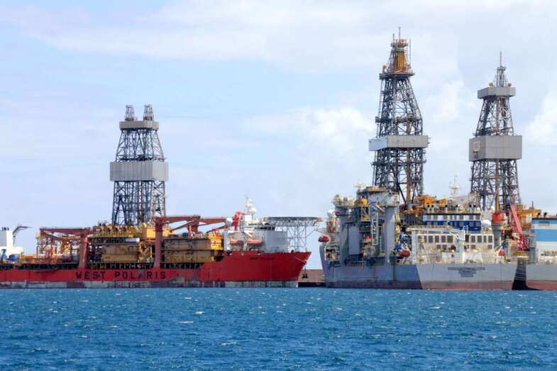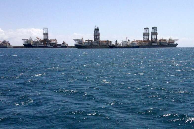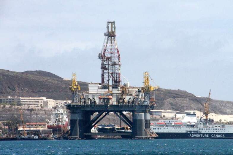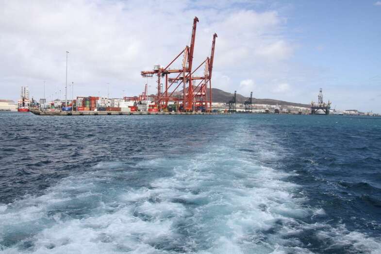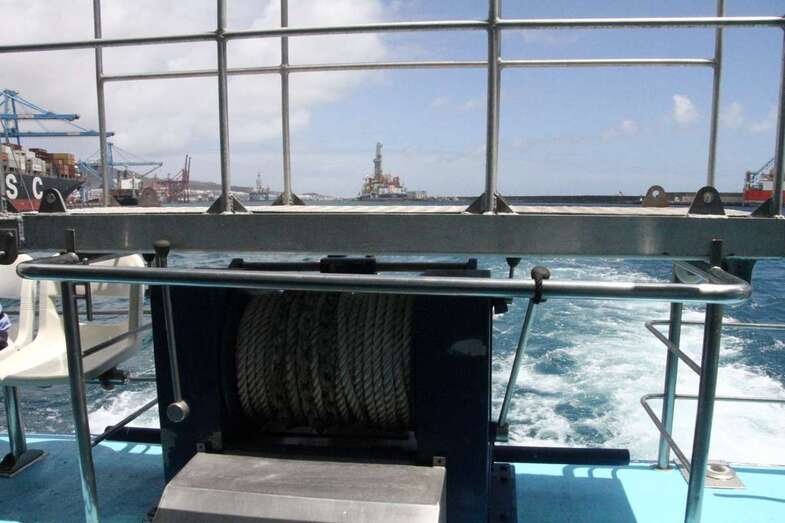 Saliendo de la Dársena Interior en torno al poniente y naciente del Muelle León y Castillo, fondeadero entre Diques, entramos en la Dársena Exterior para bordear la prolongación del sur del Dique Reina Sofía. Un espectacular sky line de torres de perforación sobre buques de compleja ingeniería permanecen atracados, como gigantes a la espera de sus destinos, pasar al pie de estos monstruos empequeñece nuestra propia imagen ante la idea de que, quienes somos observados, somos los curiosos que no dejamos de tomar imágenes ante la espectacularidad de la cercanía.