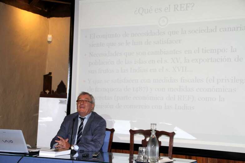 El economista e historiador Salvador Miranda presentó el pasado jueves su libro sobre el Régimen Económico y Fiscal de Canarias