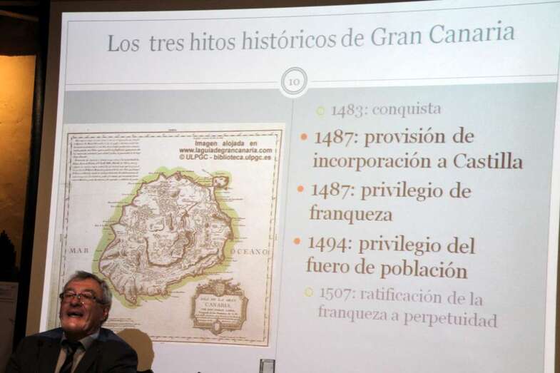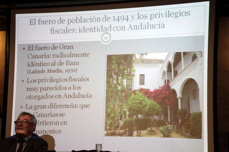 Se otorga ese Privilegio de Franqueza en 1487, pero solo durante 20 años, esta exención solo durante veinte años. Y, con posterioridad en 1494, se le concede a la isla el Fuero de Población, lo que se denomina el Privilegio de Fuero de Población. Sobre este Fuero, el Profesor Lalinde Abadía, demuestra que el Fuero de Franqueza de Gran Canaria es una copia exacta del Fuero de la Población de Baza, en Granada, Andalucía. Con lo cual se va a repetir una noción que quiero también trasmitirles, y que tengan muy claro, todo lo que se consigue en Canarias se había ya conseguido en Andalucía. No hay innovación, se repiten, concretamente, todas las situaciones de Conquista, pre conquista y pos conquista de los territorios moros de Andalucía. Es lo que se reproduce con posterioridad en las Islas Canarias, con una sola excepción, y esta excepción es que mientras en Granada, Málaga, Vélez-Málaga, en Lorca, en todas esas poblaciones importantes, se dan las exenciones tributarias por un tiempo determinado, en Canarias, con el paso del tiempo, pasan a ser para siempre jamás. Esa si es una diferencia importante. 1487 más los 20 años, 1507. Y en 1507,  los Reyes Católicos si conceden la Franqueza a Gran Canaria a perpetuidad. Es ahí, 1507, cuando yo, como historiador, digo que nace el Régimen Económico y Fiscal de Canarias, 1507.