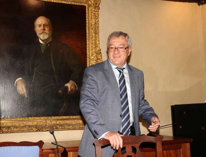“Para nosotros finalizar este arduo mes de actividades, lo cerramos con la presentación de una conferencia de D. Salvador Miranda Calderín, que para aquellos que no sepan, es economista, abogado, doctor en Historia y desde los años 80 ejerce como asesor fiscal y auditor contable, compaginando su carrera profesional con la docencia a lo largo de treinta años en las dos universidades. Ha impartido cursos de Pos Grado en la Universidad.
