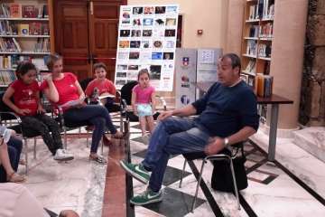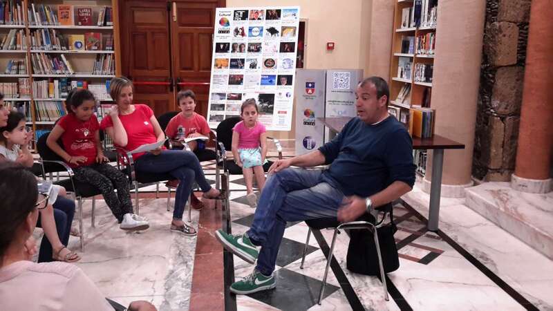 Telde.- El escritor grancanario Pedro Flores protagonizó este jueves un encuentro con lectores en la biblioteca Saulo Torón, en el parque de Arnao. Una cita que reunió a una decena de menores que acudieron con sus progenitores a conocer la obra Monstruos.