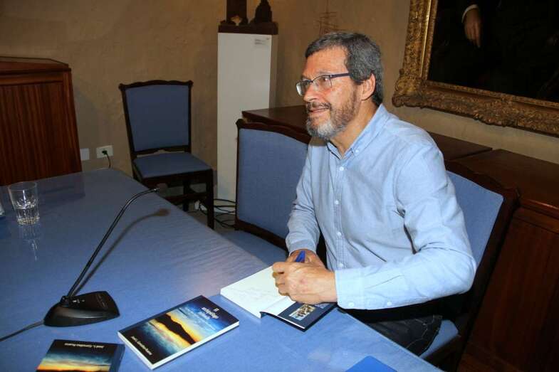 Álvaro Monzón, al finalizar las intervenciones expresa: “José Luis es nuestro viajero ilustre, hablando de aquellos viajeros del siglo XIX que llegaron a Canarias y se quedaron maravillados de nuestra naturaleza, descubriendo lo exótico fuera de Europa, como bien mencionó José Luis, pero él, sin embargo, con su estilo literario nos traslada mentalmente a una naturaleza mitológica en una narrativa de espacios salvajes, y casi virgen, de nuestra tierra. Les voy a leer un ejemplo de esto que les cuento sobre su propio estilo literario. Un pequeño párrafo para argumentar su estilo narrativo, de las páginas 18 y 19 de su nuevo libro. Él estaba sentado en la isla de Alegranza, cerca de un jameo…