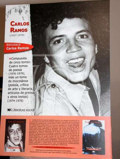Germán Ramos, hermano de Carlos, presente en este encuentro, agradece todo lo que se ha hecho por la memoria de su hermano y la difusión de su obra poética, escogiendo uno de los poemas del Tomo Dos, a los que él mismo da lectura: una nube:/ me viene, me sonríe, me besa, me eleva/ y andamos juntos hasta una danza de paz/ algunos pájaros disecados picotean el mar/ de nuestros pies en movimiento/ bebiendo gotas de espuma que levantan/ el salto de nuestros cabellos/ el amor de nuestras uñas se manifiesta/ en los dedos de los pies y de las manos./ el amor de nuestras uñas se manifiesta/ en los dedos de los pies y de las manos,/ nuestro baile nos deja entrar en un sopor enfermo de ansias…/ Versos del poemario El Frío que no nos Pertenece.
