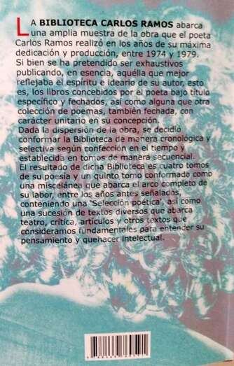 En 2015, Agustín Hernández, artista plástico amigo de Carlos, y yo, decidimos intentar de nuevo la publicación de parte de los poemas de Carlos. Copias que dimos a Franquelo, a Pepe Medina y a Ángel Sánchez por contar con copias y que no se perdieran. Revisamos y digitalizamos los textos, y ya en 2017, con la colaboración de Javier Cabrera, un hombre que conoció y trabajó con Carlos en el Grupo Tarja, experto que ha publicado muchos libros suyos y de otros escritores, y en 2017 se publica el número 1. Realizada esta selección reunidos los poemas fechados entre 1976 y 1979, aparecerán en cinco tomos bajo el epígrafe genérico de Biblioteca Carlos Ramos, y que pretendemos sean editados entre septiembre de 2017 y septiembre de 2019.