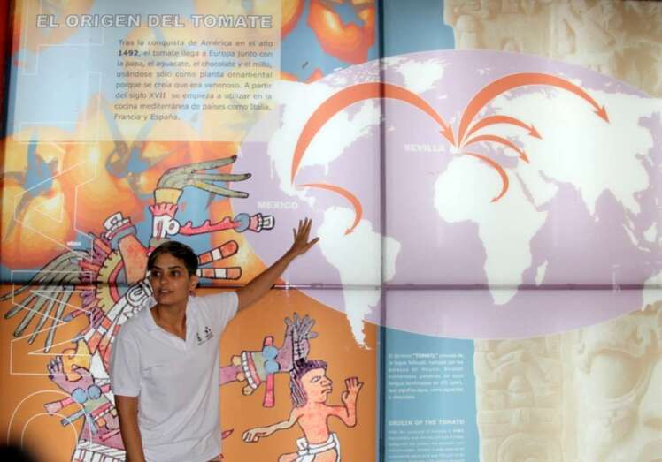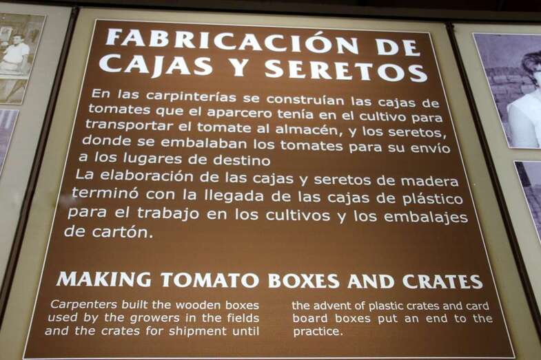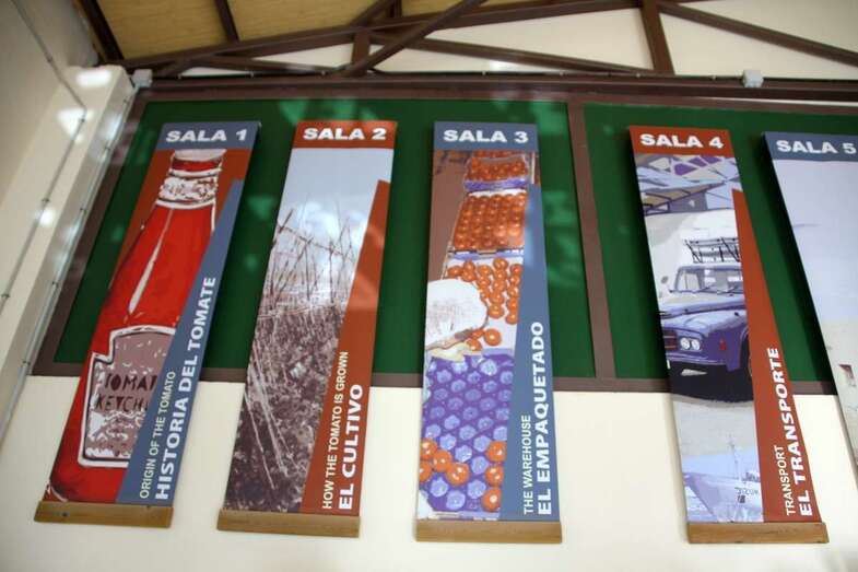 Un elemento museístico etnográfico integrado por la cultura y labores de la tierra, del agua y la mano de obra en torno al tomate. Un interesantísimo recorrido por una excelente muestra que expone e informa en base a la cantidad y calidad de los paneles, el desarrollo del cultivo de la Solanum Lycopersicum, nombre científico del tomate y su procedencia, planta traída por Cristóbal Colón en 1492 desde Méjico.