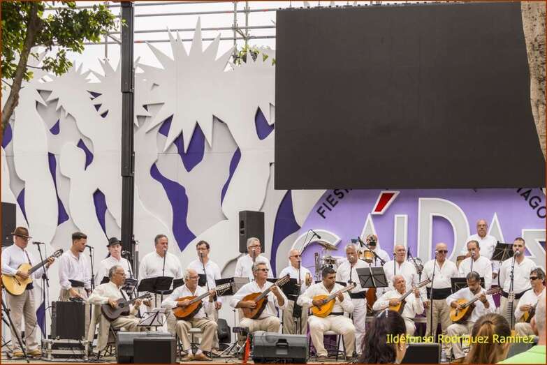 La formación de música popular canaria e hispanoamericana que dirige Antonio Cejudo compartió escenario en la Plaza de Santiago con la actuación de la AF Farrallón Tábata y su escuela de folclore y dejó evidencia de la calidad de sus voces.