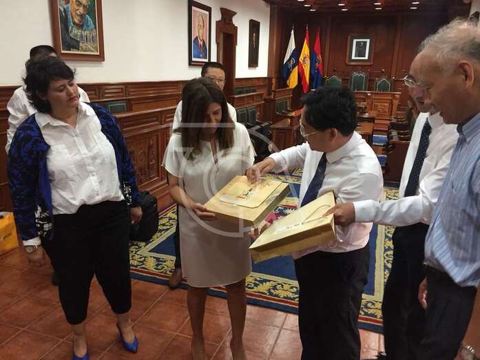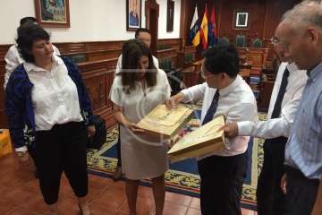 Telde les regaló a cada uno como recuerdo de su visita una pieza artesanal de barro cocido, de factura canaria, y un disco con poemas de Sanmao y los chinos obsequiaron a la ciudad con un libro biográfico de tela de seda con imágenes de la escritora taiwanesa que residió en Playa del Hombre y otro con sus poemas, además de un pañuelo de seda.