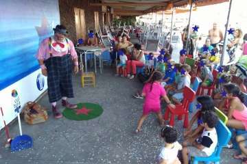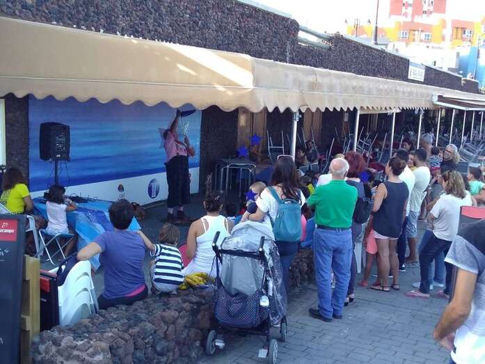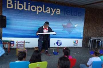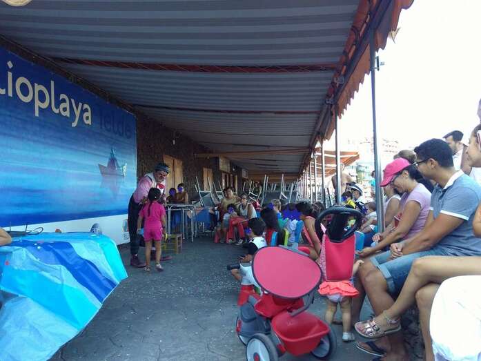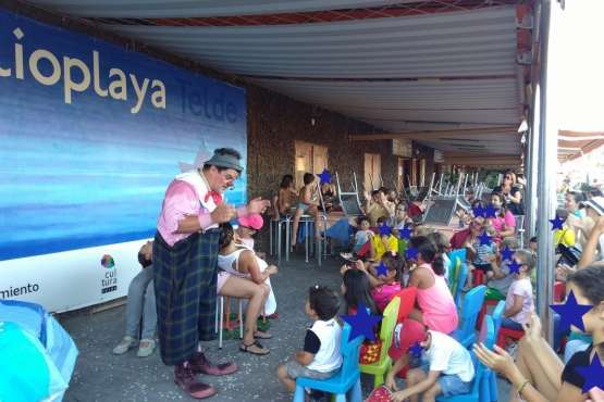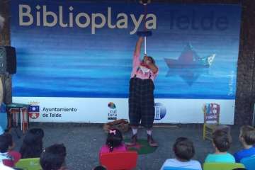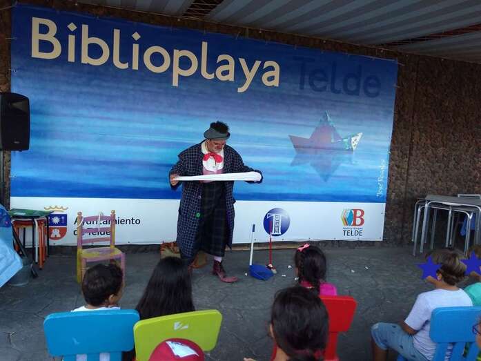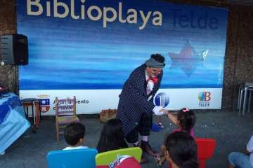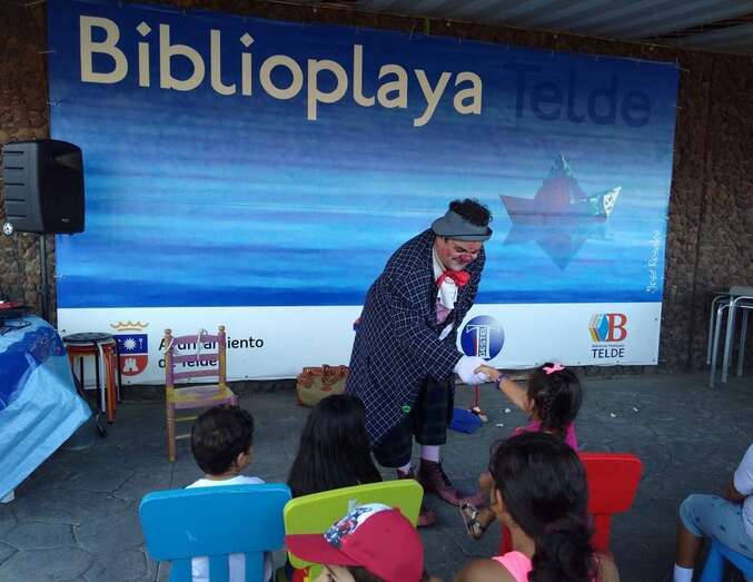 Telde.- Niños y adultos se divirtieron de lo lindo el pasado en la BiblioPlaya de Melenara con las ocurrencias del payaso Chincheta.