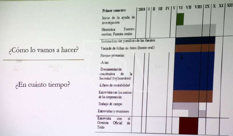 Otro importante aspecto a tratar son las fuentes, los documentos escritos, de primera mano, cómo son las actas, y luego los trabajos que han hecho otras personas sobre sociedades similares y ver un poco el contexto político y social que tiene, en este caso, Telde, Gran Canaria, en los momentos de la creación de las Sociedades y como se han ido manejando con el tiempo.