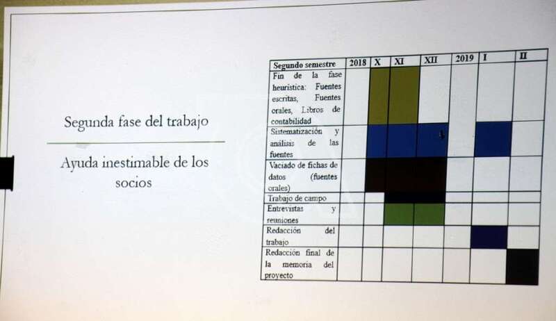 Las fuentes utilizadas serán los reglamentos de esta sociedad, las actas, los libros registro de ventas, compras, y de ahí obtendremos información necesaria aunque no toda está ahí porque el resto va a proceder de la consulta con la ciudadanía, con ustedes mismos, como las posesiones de tierras, trabajadores, tipos de cultivo, quiénes cultivaban, que se trajo y que fue desapareciendo con el tiempo, para esto hay una serie de puntos que tenemos que presentar como exigencias del trabajo de investigación.
