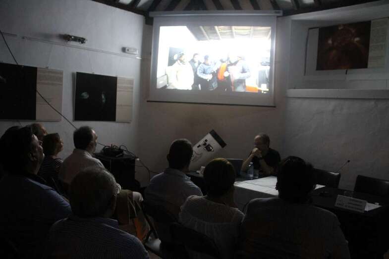 Durante la proyección del video documental con la presentación humana y de dedicación desde los primeros momentos de su creación hace 28 años, en un homenaje a los hombres y mujeres que por afición, por curiosidad o por admiración del cielo de Canarias, desde muy tempranas edades alzaron sus miradas al cielo en la búsqueda de numerosas respuestas y bajo el firmamento que abriga el espacio insular canario, compartieron experiencias, subieron a las cumbres, o desde otras atalayas para observar a través de sus primeros elementos telescópicos, qué pasaba por ese profundo y silencioso firmamento que pendía sobre sus cabezas, y así han conseguido hacer realidad este hermoso proyecto.
