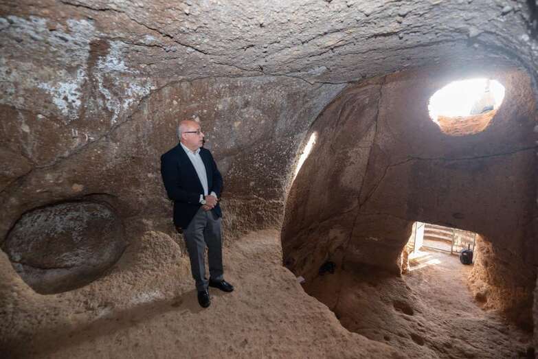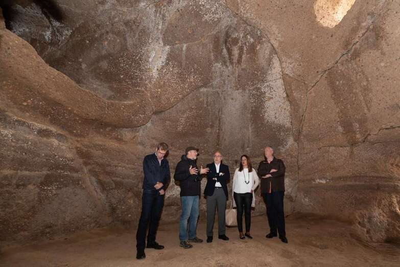 El presidente del Cabildo y la alcaldesa de Telde visitaron este martes la cueva (Foto TA) El presidente del Cabildo y la alcaldesa de Telde visitaron este martes la cueva (Foto TA)