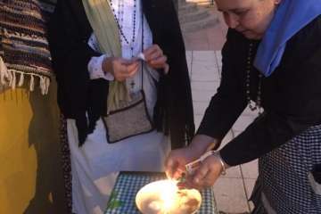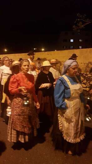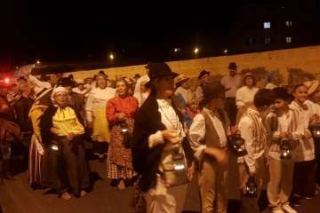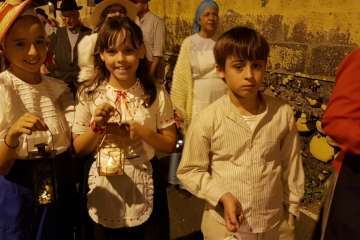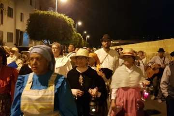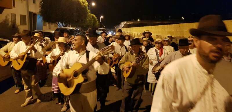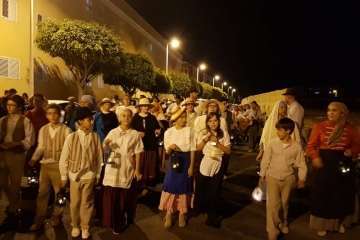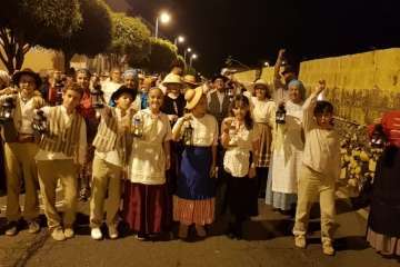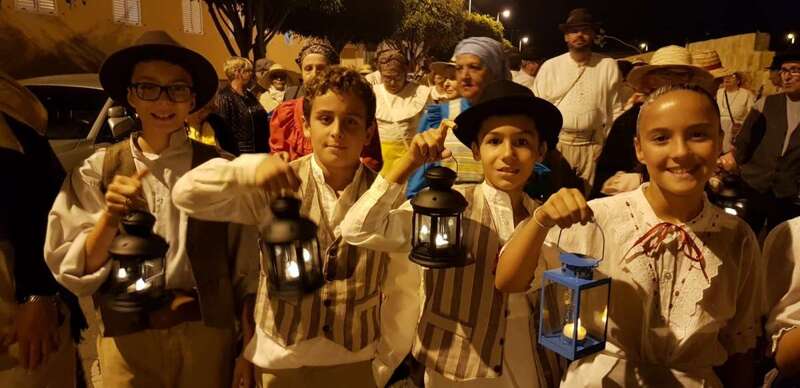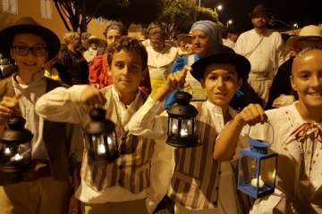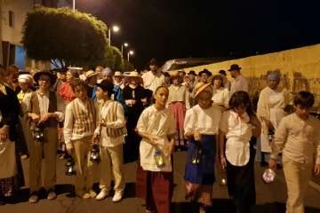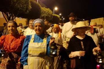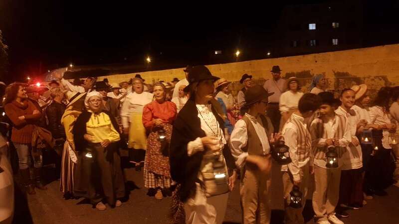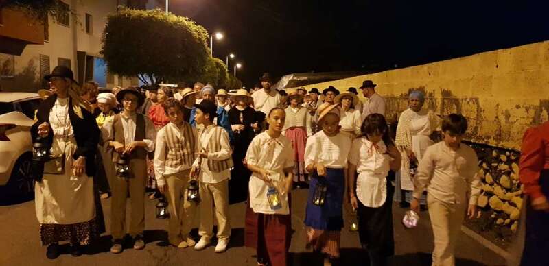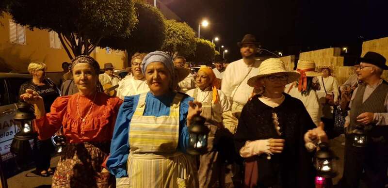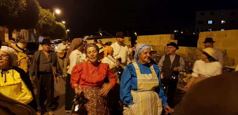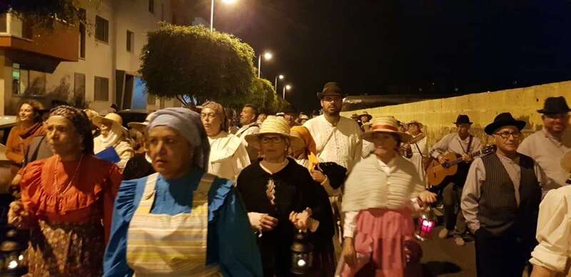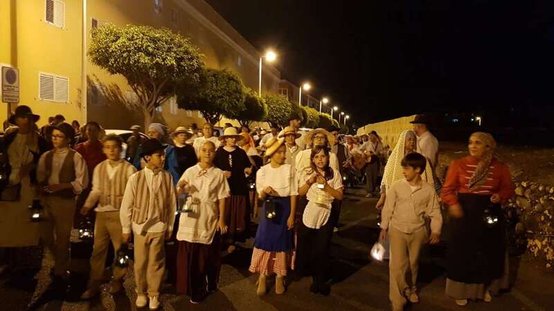 La velada comenzó poco después de las 20.00 horas con un animado pasacalles amenizado por el grupo Gran Faycán del Centro de Mayores de Telde y el alumnado del Centro Ocupacional desde el barrio de Ponce hasta la plaza. Discurrió por la calle de Mesonero Romanos con mayores y pequeños portando candelabros con velas encendidas.