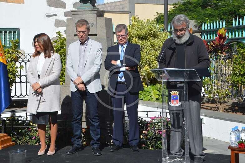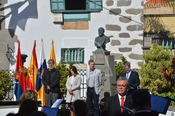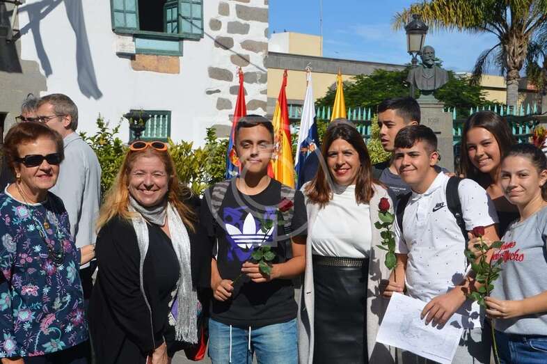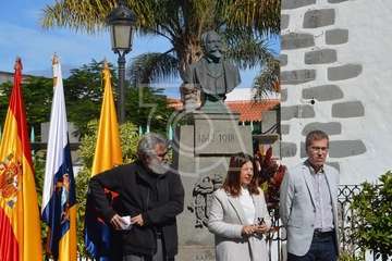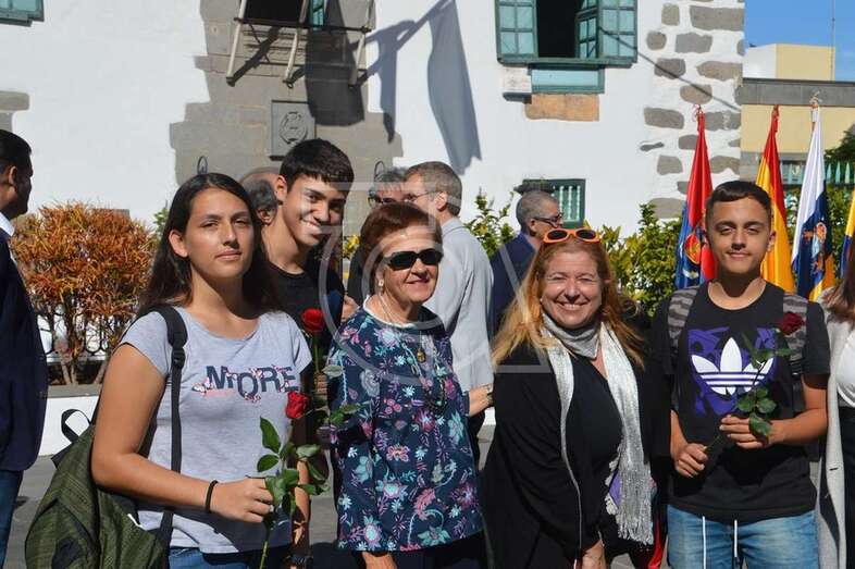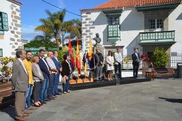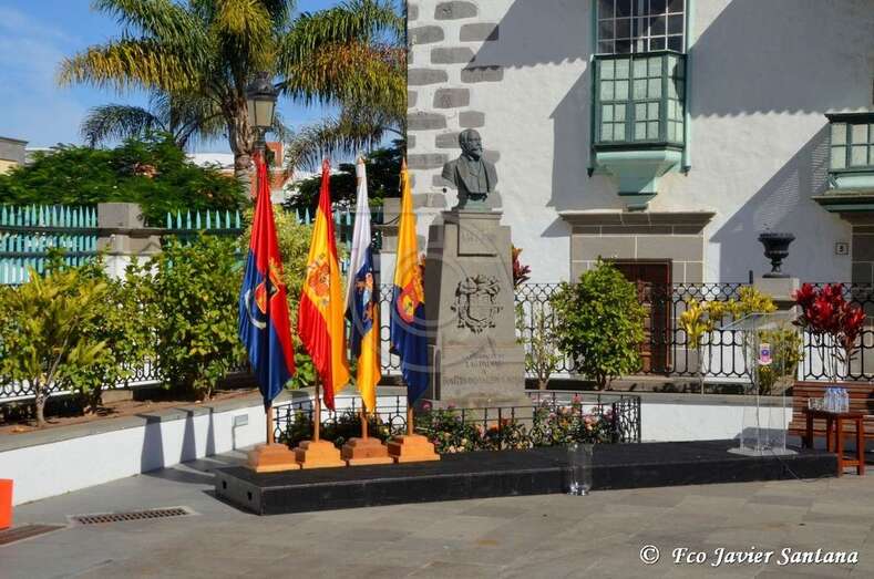 Telde.- Rosas rojas y música marcaron este mediodía la ofrenda floral en la plaza de San Juan ante el busto erigido en memoria del patricio grancanario Fernando León y Castillo, natural de Telde, por el 176 aniversario de su nacimiento y cuando al mismo tiempo se cumplen 100 años desde que se llevó a cabo el primero de estos homenajes a esta insigne figura de la historia de Canarias.