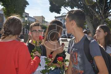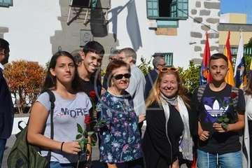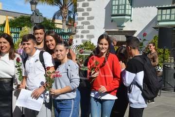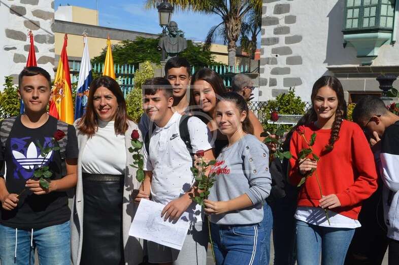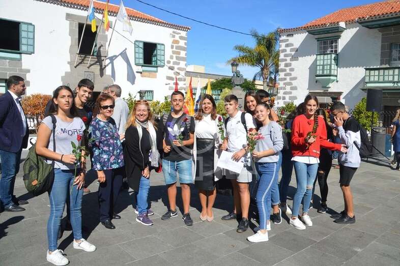 Las 200 flores fueron depositadas en la base del monumento por un grupo de 11 alumnos de 4º de la ESO del IES Casas Nuevas, autoridades y representantes de entidades y colectivos sociales del municipio.