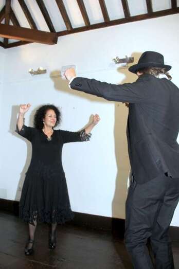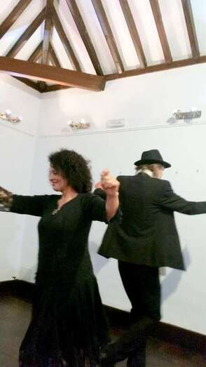 Con la participación y colaboración en la danza que marcaron los ritmos y cadencias del cancionero interpretado por Julián David, se tuvo la oportunidad de presenciar la actuación de la pareja de baile formada por José Lantigua y María Hernández, canarios por excelencia, expertos conocedores de la zamba, cueca, chacarera, y al ritmo marcado por David, en esta noche, la milonga, con el alma y huellas de su danza puesto en las dos orillas, en un precioso estilo de personalidad y estética de carácter argentino expresaron con sus evoluciones un bello marco, símbolo artístico del baile folclórico del país del tango, inspirados por los acordes de la guitarra y voz del Cantor, Julián David.