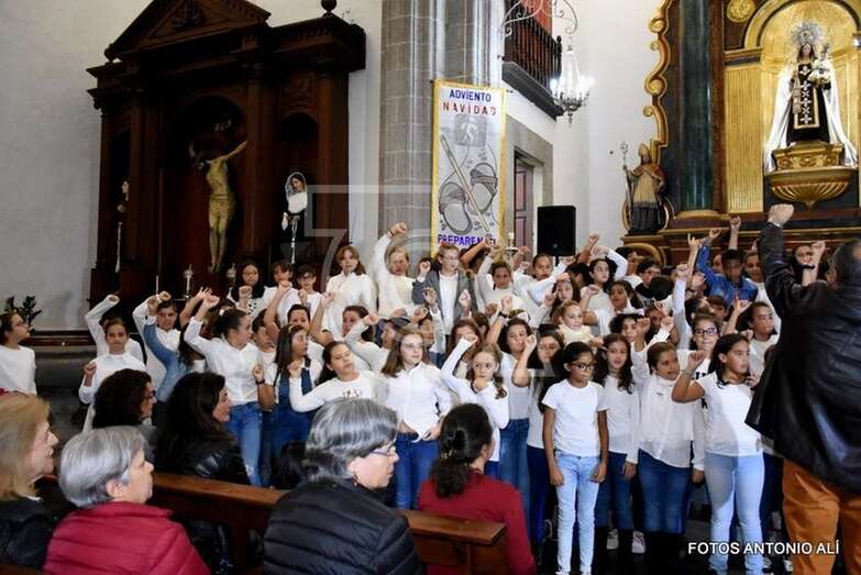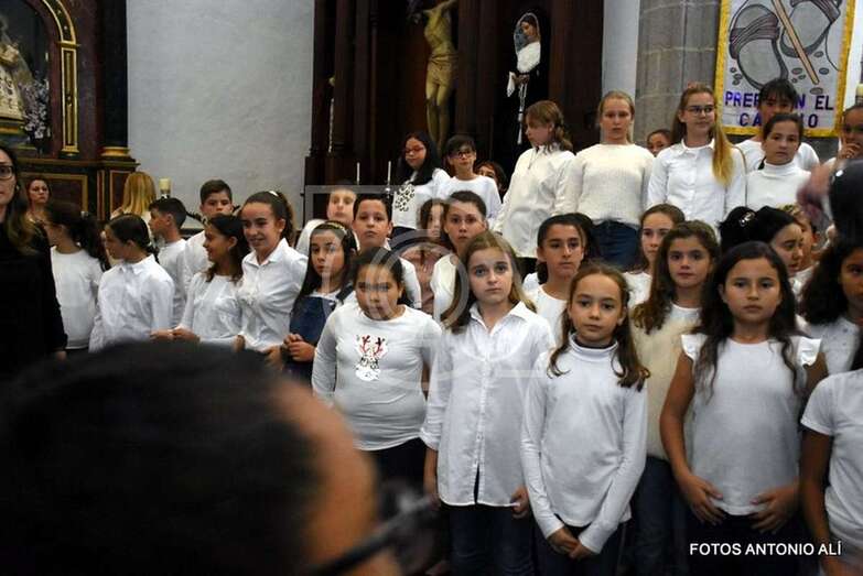 Los coros Derque y Soront, formados por alumnos de los colegios León y Castillo, Plácido Fleitas, Poeta Fernando González y San Juan y dirigidos por Gustavo Sarmiento, pusieron la nota musical con la interpretación de varias composiciones propias de la Navidad, en el interior del templo bajo la advocación de San Gregorio, y ayudaron a la primera mandataria a pulsar el botón que encendía el alumbrado especial de estas fechas.