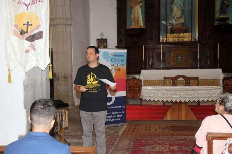 Acto presentado por el coordinador de esta Semana Canaria de Música Coral, Javier Toledo, abriendo el turno de interpretaciones la Coral Polifónica de San Bartolomé de Lanzarote que interpretan: Stabat Mater, de Zoltán Kodály (1882-1967). Eres Tú, composición de Juan Carlos Calderón. Villancico, tradicional Popular. Viva la Gente, de Paul y Ralph Colwell. Popurrí Canario, Tajaraste, Polka y el Sorondongo, con alusiones al gorro campesino de la sombrera.