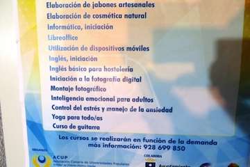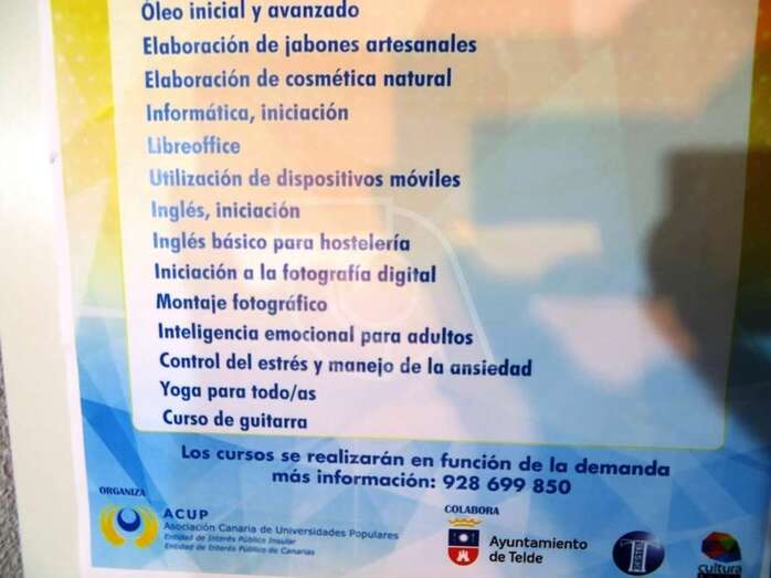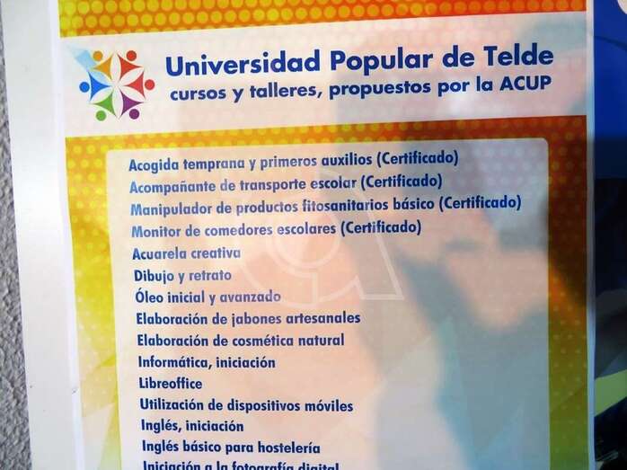 El catálogo formativo de la Universidad Popular de Telde contará inicialmente con veinte materias, algunas de ellas con certificación oficial de organismos como la Escuela de Servicios Sanitarios y Sociales de Canarias o la Universidad de Las Palmas de Gran Canaria. Y poco a poco se irá enriqueciendo con las propuestas del alumnado.
