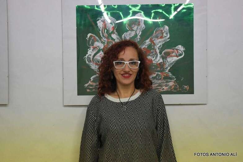 La artista delante de uno de sus cuadros (Foto TA) La artista delante de uno de sus cuadros (Foto TA)