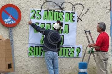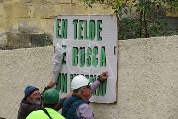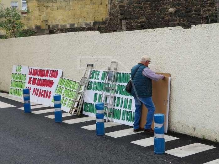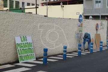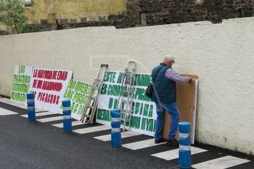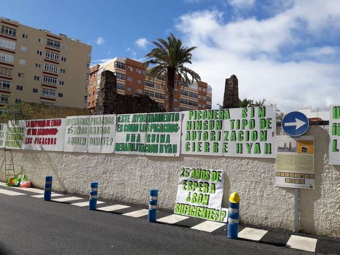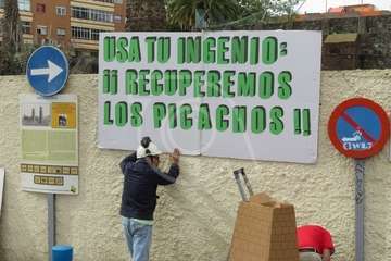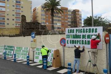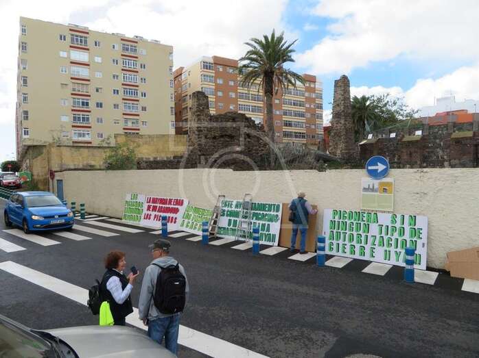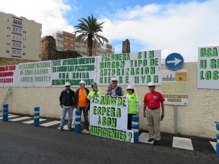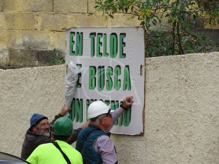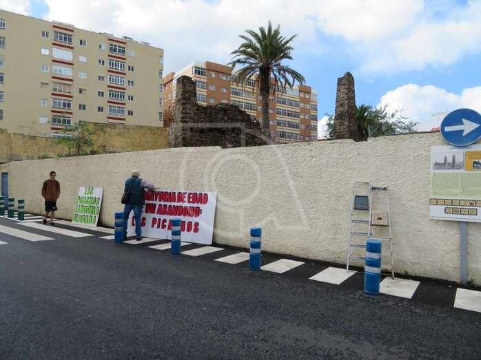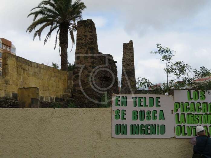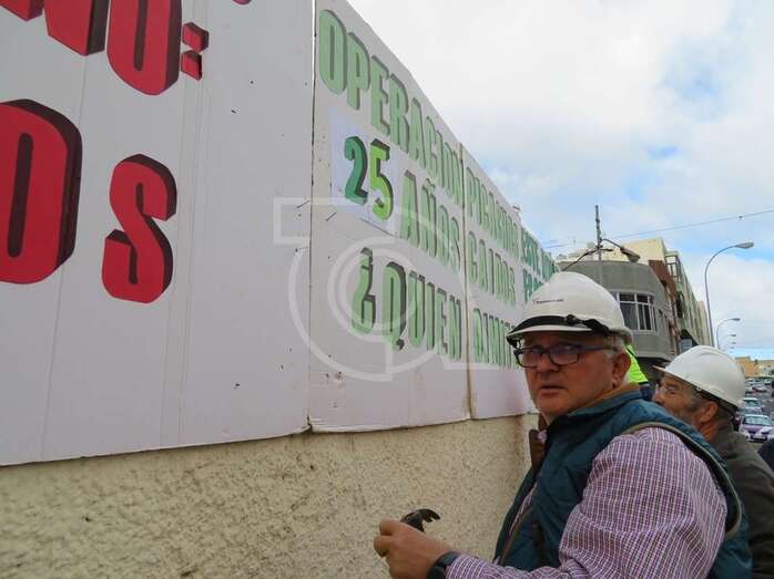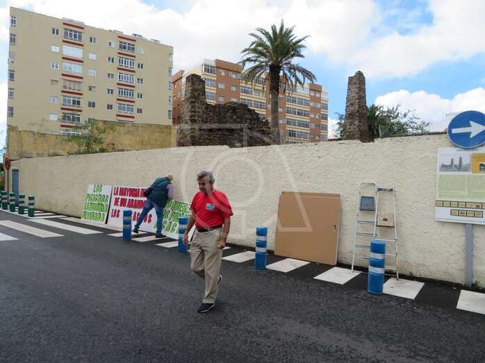 Al principio no llegaron a diez a diez personas, pero poco a poco fueron sumándose nuevos asistentes, como el cronista oficial de la ciudad, Antonio María González Padrón o el candidato de Juntos por Telde, Héctor Suárez. Todos se pusieron mano a la obra minutos antes de las 11.00 horas para fijar al muro poniente del recinto que alberga los restos de la construcción de la industria azucarera del siglo XVI hasta 10 cartelones que simbolizan con sus mensajes la lucha que este colectivo ecologista ha mantenido desde febrero de 1994, hace ahora 25 años, para que las administraciones públicas se hagan con la propiedad del solar donde están las pilastras del antiguo ingenio como paso previo a su posterior restauración.