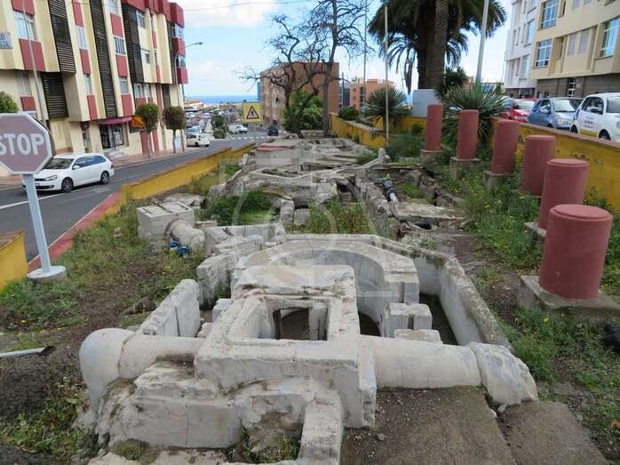 Pero Turcón quiere que el Cabildo amarre también la protección de otros bienes etnográficos situados dentro del perímetro del BIC. Le plantea que detalle bien y justifique los valores del estanque o tanque de Los Picachos o de La Mareta, que data del siglo XIX y tiene unos 420 metros cuadrados, situado justo al lado; de otro depósito de agua más pequeño; y de las muy cercanas cantoneras de Los Picachos, un valioso, pero descuidado complejo hidráulico, al pie de la carretera de El Calero, que, según el historiador Eduardo Medina en su libro Adeyahamen, se compone en sus 20 metros de largo de 10 cantoneras.